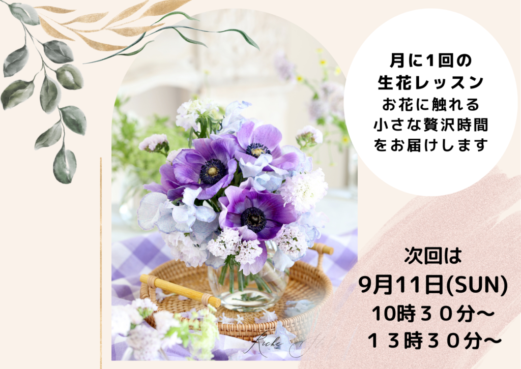 【9月の生花レッスンのお知らせ】